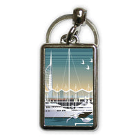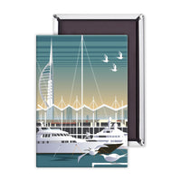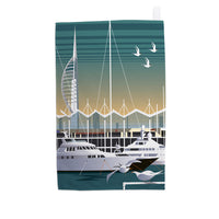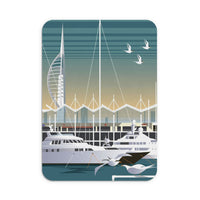 Stylish cushion design of Gunwharf Quays by talented artist, Dave Thompson. Thompson's art revisits a classic era of poster design, taking many elements of popular 1950's travel art, while remaining current and vibrant. Measuring in at 40cm x 40cm, our comfortable cushions come filled with plump microfibre inner for a lasting shape. Proudly printed and produced on Soft-touch faux suede in the UK.