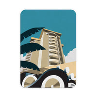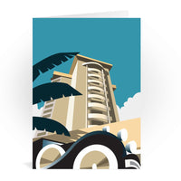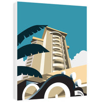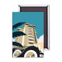 A stunning Metal Sign featuring the design of a band stand with colourful deck chairs in the foreground.