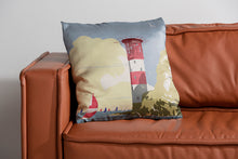 Stylish cushion design of The Needles Blank by talented artist, Dave Thompson. Thompson's art revisits a classic era of poster design, taking many elements of popular 1950's travel art, while remaining current and vibrant. Measuring in at 40cm x 40cm, our comfortable cushions come filled with plump microfibre inner for a lasting shape. Proudly printed and produced on Soft-touch faux suede in the UK.