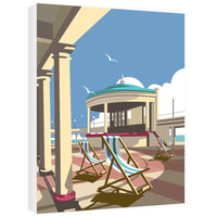 A stunning design of Eastbourne Bandstand Blank Art Print. By talented artist, Dave Thompson. Thompson's art revisits a classic era of poster design, taking many elements of popular 1950's travel art, while remaining current and vibrant.