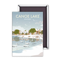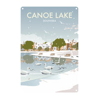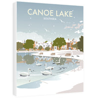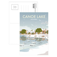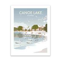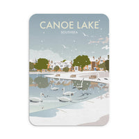 A stunning Greeting Card featuring the design of Canoe Lake Southsea Winter by talented artist, Dave Thompson. Thompson's art revisits a classic era of poster design, taking many elements of popular 1950's travel art, while remaining current and vibrant.