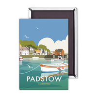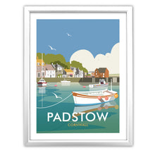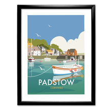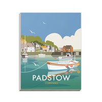 A stunning design of Padstow Art Print. By talented artist, Dave Thompson. Thompson's art revisits a classic era of poster design, taking many elements of popular 1950's travel art, while remaining current and vibrant.