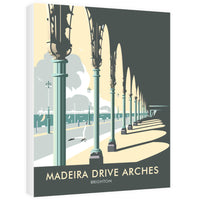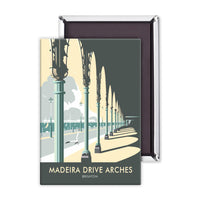 Stylish cushion design of Madeira Drive Arches, Brighton by talented artist, Dave Thompson. Thompson's art revisits a classic era of poster design, taking many elements of popular 1950's travel art, while remaining current and vibrant. Measuring in at 40cm x 40cm, our comfortable cushions come filled with plump microfibre inner for a lasting shape. Proudly printed and produced on Soft-touch faux suede in the UK.