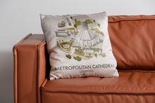 Stylish cushion design of Metropolitan Cathedral, Liverpool by talented artist, Dave Thompson. Thompson's art revisits a classic era of poster design, taking many elements of popular 1950's travel art, while remaining current and vibrant. Measuring in at 40cm x 40cm, our comfortable cushions come filled with plump microfibre inner for a lasting shape. Proudly printed and produced on Soft-touch faux suede in the UK.