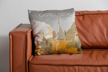 Stylish cushion design of Castell Coch, Tongwynlais by talented artist, Dave Thompson. Thompson's art revisits a classic era of poster design, taking many elements of popular 1950's travel art, while remaining current and vibrant. Measuring in at 40cm x 40cm, our comfortable cushions come filled with plump microfibre inner for a lasting shape. Proudly printed and produced on Soft-touch faux suede in the UK.