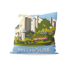 Stylish cushion design of Hillhouse, Helensburgh by talented artist, Dave Thompson. Thompson's art revisits a classic era of poster design, taking many elements of popular 1950's travel art, while remaining current and vibrant. Measuring in at 40cm x 40cm, our comfortable cushions come filled with plump microfibre inner for a lasting shape. Proudly printed and produced on Soft-touch faux suede in the UK.