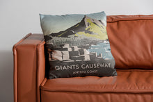 Stylish cushion design of Giants Causeway, Antrim Coast by talented artist, Dave Thompson. Thompson's art revisits a classic era of poster design, taking many elements of popular 1950's travel art, while remaining current and vibrant. Measuring in at 40cm x 40cm, our comfortable cushions come filled with plump microfibre inner for a lasting shape. Proudly printed and produced on Soft-touch faux suede in the UK.