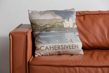 Stylish cushion design of Cahersiveen, Co. Kerry, Ireland by talented artist, Dave Thompson. Thompson's art revisits a classic era of poster design, taking many elements of popular 1950's travel art, while remaining current and vibrant. Measuring in at 40cm x 40cm, our comfortable cushions come filled with plump microfibre inner for a lasting shape. Proudly printed and produced on Soft-touch faux suede in the UK.