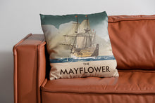 Stylish cushion design of The Mayflower by talented artist, Dave Thompson. Thompson's art revisits a classic era of poster design, taking many elements of popular 1950's travel art, while remaining current and vibrant. Measuring in at 40cm x 40cm, our comfortable cushions come filled with plump microfibre inner for a lasting shape. Proudly printed and produced on Soft-touch faux suede in the UK.