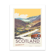 A stunning design of Scotland By Road 3. By talented artist, Dave Thompson. Thompson's art revisits a classic era of poster design, taking many elements of popular 1950's travel art, while remaining current and vibrant.