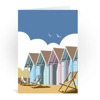 A stunning design of Beach Huts Art Print. By talented artist, Dave Thompson. Thompson's art revisits a classic era of poster design, taking many elements of popular 1950's travel art, while remaining current and vibrant.