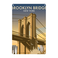A stunning design of Brooklyn Bridge Art Print. By talented artist, Dave Thompson. Thompson's art revisits a classic era of poster design, taking many elements of popular 1950's travel art, while remaining current and vibrant.