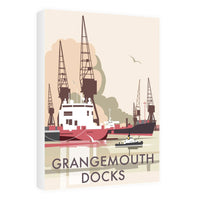 A stunning design of Grangemouth Docks Art Print. By talented artist, Dave Thompson. Thompson's art revisits a classic era of poster design, taking many elements of popular 1950's travel art, while remaining current and vibrant.