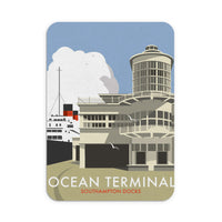 A stunning design of Ocean Terminal, Southampton Art Print. By talented artist, Dave Thompson. Thompson's art revisits a classic era of poster design, taking many elements of popular 1950's travel art, while remaining current and vibrant.
