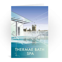 A stunning design of Thermae Bath Spa Art Print. By talented artist, Dave Thompson. Thompson's art revisits a classic era of poster design, taking many elements of popular 1950's travel art, while remaining current and vibrant.