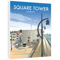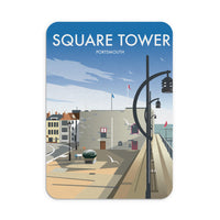 A stunning design of Square Tower, Portsmouth Art Print. By talented artist, Dave Thompson. Thompson's art revisits a classic era of poster design, taking many elements of popular 1950's travel art, while remaining current and vibrant.
