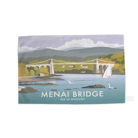 A stunning design of Menai Bridge Art Print. By talented artist, Dave Thompson. Thompson's art revisits a classic era of poster design, taking many elements of popular 1950's travel art, while remaining current and vibrant.