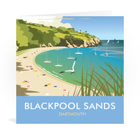 A stunning design of Blackpool Sands Art Print. By talented artist, Dave Thompson. Thompson's art revisits a classic era of poster design, taking many elements of popular 1950's travel art, while remaining current and vibrant.
