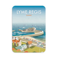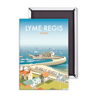 A stunning design of Lyme Regis Art Print. By talented artist, Dave Thompson. Thompson's art revisits a classic era of poster design, taking many elements of popular 1950's travel art, while remaining current and vibrant.