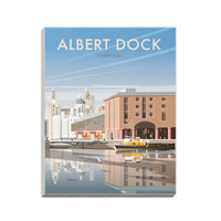 A stunning design of Albert Dock Art Print. By talented artist, Dave Thompson. Thompson's art revisits a classic era of poster design, taking many elements of popular 1950's travel art, while remaining current and vibrant.