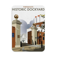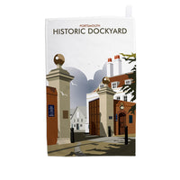 A stunning Greeting Card featuring the design of Portsmouth Dockyard by talented artist, Dave Thompson. Thompson's art revisits a classic era of poster design, taking many elements of popular 1950's travel art, while remaining current and vibrant.