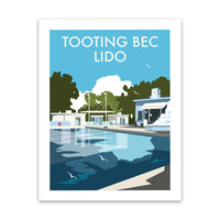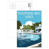 A stunning Greeting Card featuring the design of Tooting Bec Lido by talented artist, Dave Thompson. Thompson's art revisits a classic era of poster design, taking many elements of popular 1950's travel art, while remaining current and vibrant.