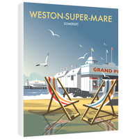 A stunning Greeting Card featuring the design of Weston Super Mare by talented artist, Dave Thompson. Thompson's art revisits a classic era of poster design, taking many elements of popular 1950's travel art, while remaining current and vibrant.