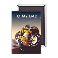 A stunning Greeting Card featuring the design of Motorbike Dad by talented artist, Dave Thompson. Thompson's art revisits a classic era of poster design, taking many elements of popular 1950's travel art, while remaining current and vibrant.
