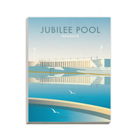 A stunning Greeting Card featuring the design of Jubilee Pool, Cornwall by talented artist, Dave Thompson. Thompson's art revisits a classic era of poster design, taking many elements of popular 1950's travel art, while remaining current and vibrant.