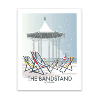 A stunning Greeting Card featuring the design of Eastbourne Bandstand Winter by talented artist, Dave Thompson. Thompson's art revisits a classic era of poster design, taking many elements of popular 1950's travel art, while remaining current and vibrant.