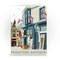 Take notes in style with this stunning Dave Thompson A6 notepad. The classic design features Parmiters Antiques. Write on eco-friendly paper with confidence knowing that all Dave Thompson notepads are made with ethically sourced and FSC accredited materials. The talented Dave Thompson revisits a classic era of design, using elements of popular 1950Ã¢š¬ž¢s travel art. ThompsonÃ¢š¬ž¢s stunning designs remain current and vibrant, and all notepads are proudly printed in the UK.